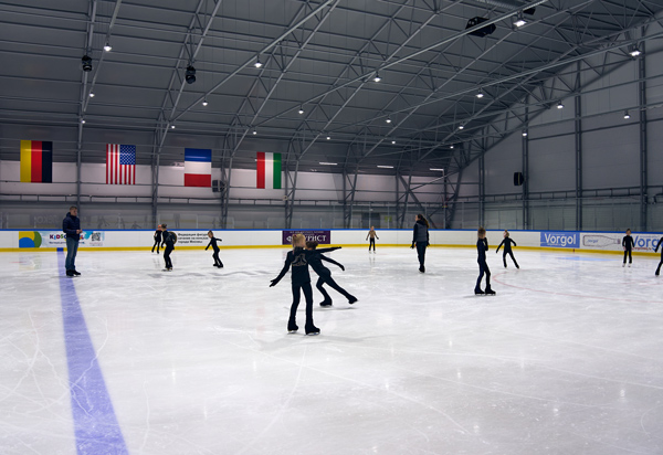 Арена 30х60 метров с идеальным ледовым покрытием, которая вмещает до 150 человек при массовом катании.